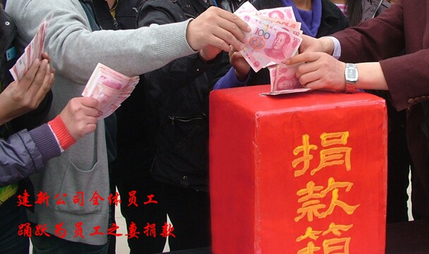 201471日下午,建新公司簡單的舉行了“向員工明福濤之妻獻愛心”的募捐儀式,用一份份真摯的愛心筑起希望的長城。當建新公司代表把錢親手送到員工手里時,他熱淚盈眶。用深深的一個鞠躬表達了對建新全體員工的感激之情。